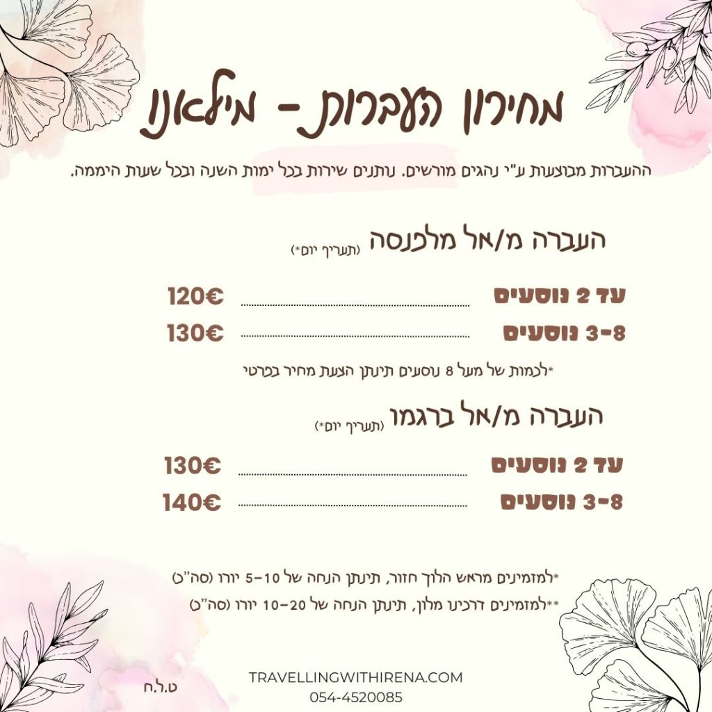 יש לנו שירות של העברות וטיולי יום ממילאנו.